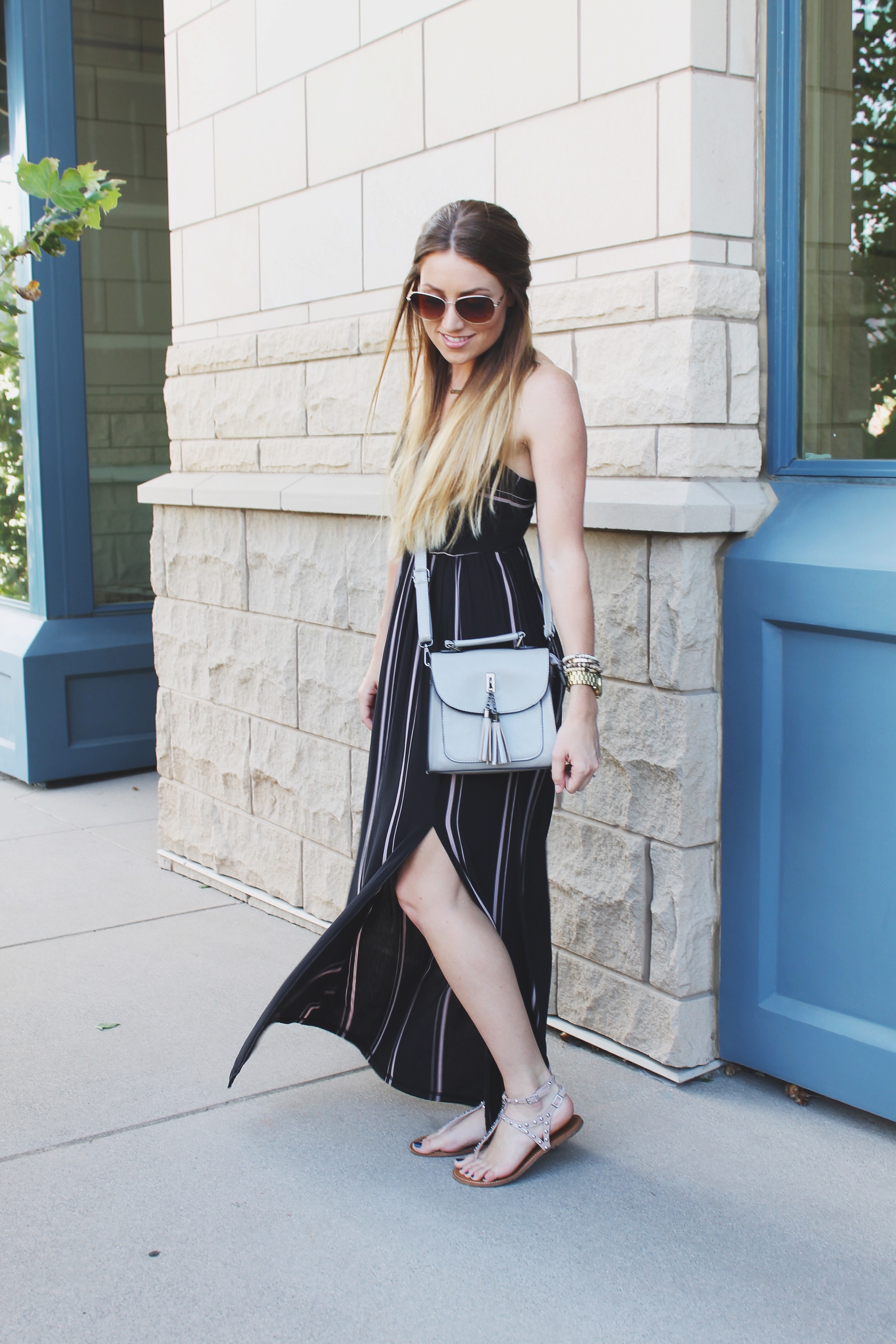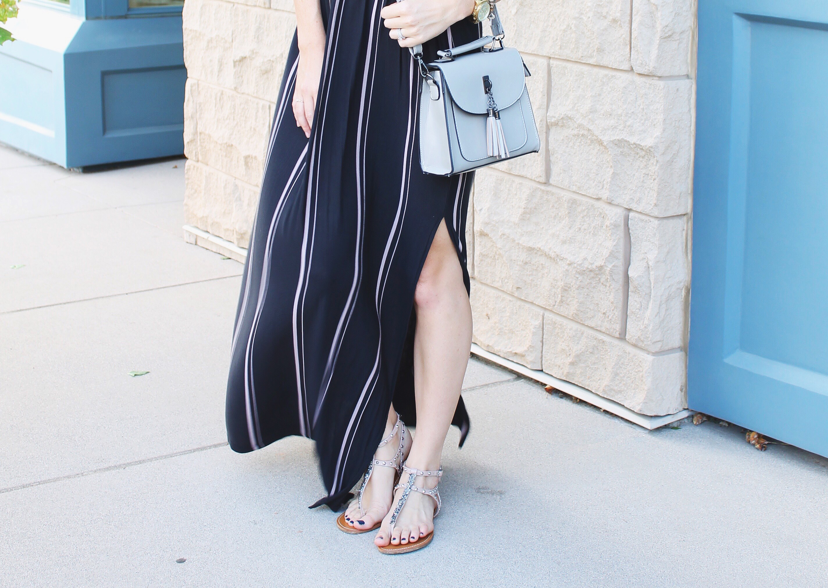 Happy Monday! I wanted to share a look I wore this past Friday out to dinner with Andrew. This summer has been very long and very hot. Today is the first day I haven’t had to turn the AC on at 9:00 am. It has been brutal to say the least. So considering it was still pretty toasty last Friday, I threw on this maxi dress because 1. it is super comfortable and 2. it is only one thin layer of clothing. I paired it with a pair of studded flats and crossbody bag for an effortless feel. I hope you all have been having a great summer. I am soooo ready for fall. Scented candles, sweaters and hot tea are calling my name!