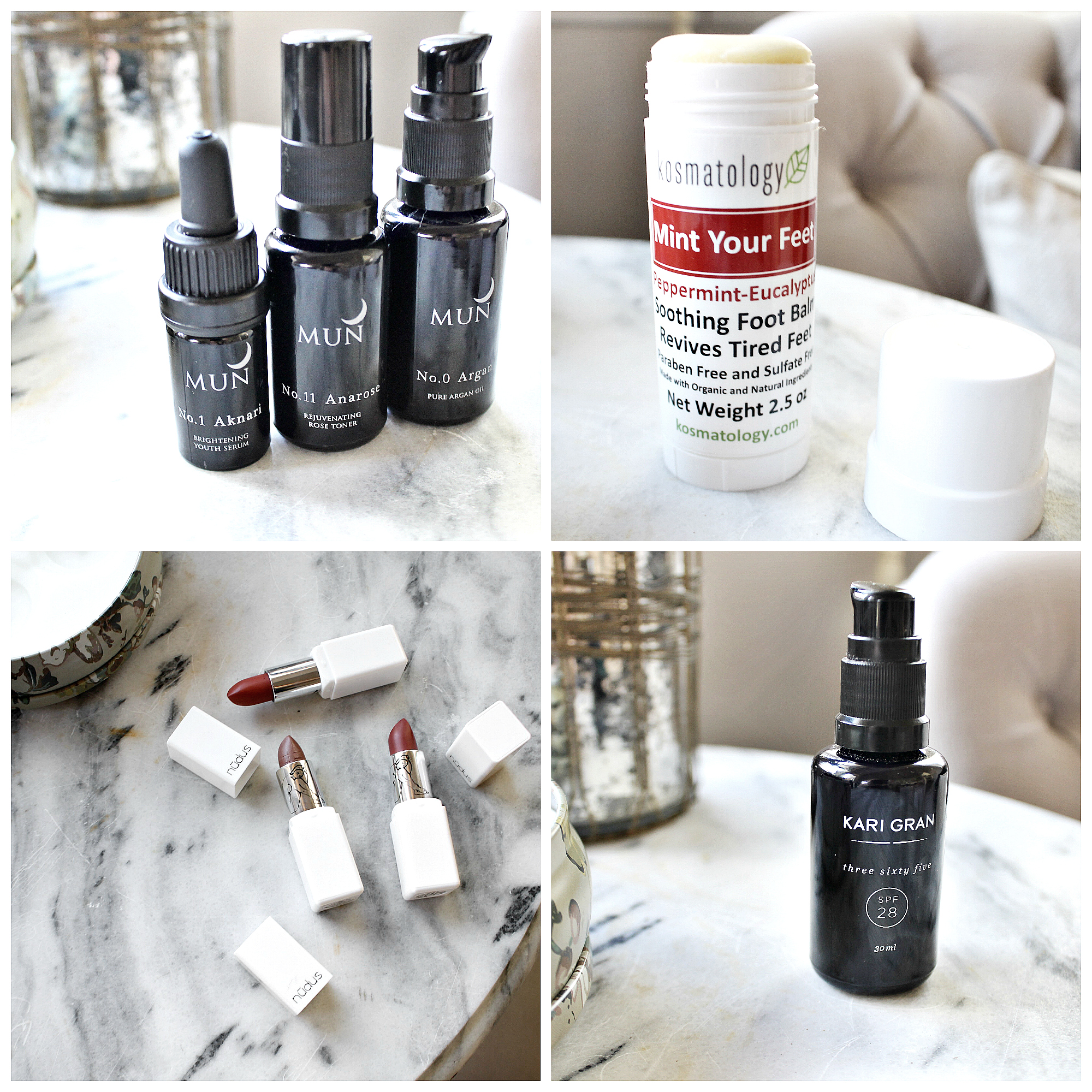 I have been testing out the MUN skincare and it’s worked great with my skin. My favorite from the trio is the Brightening Youth Serum. Especially as we head into the cooler months, I’m loving oils on my skin at night. They pump up the moisture and keep my hydrated until the next day. The Mint Your Feet by Kosmatology has been a lifesaver for my achy preggo feet! It has a soothing blend of essential oils that add a cooling effect. I tend to use this at night when I’m getting ready for bed or watching tv. The Nudus lipsticks intimidated me at first because I thought they would be too dark for my lips. But I has happily surprised once I applied them. They give a more sheer wash of color and are in very flattering shades. My favorite is Naked. Last is the Kari Gran sunscreen. Love! It has more of an oily consistency but rubs right into the skin without leaving a white cast. I can’t go a day without it!