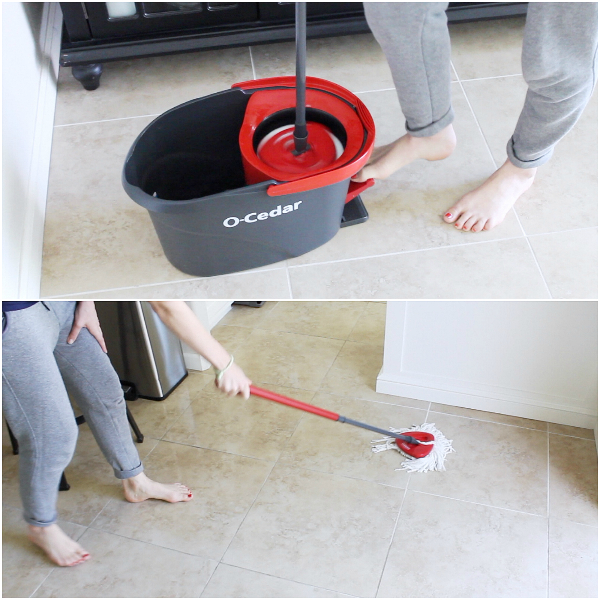 ^^The next place I have to keep clean are the floors. I just got this new mop from O-Cedar, called the EasyWringTM Spin Mop & Bucket System. It makes cleaning my floors super easy since there is a pedal that allows you to control how much water is left in the mop head. I like to wring a lot of the water out so that I can cut down on the dry time! (Watch my video to see it in action.) It’s also great because the microfiber mophead is reusable and washable. And the handle can be extended to 51″ so you don’t have to worry about ever getting a sore back after cleaning.^^