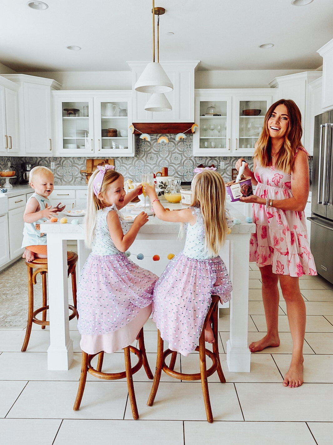 /Sometimes when you are having a heat wave, you throw an ice cream party during the middle of the day with your kids! But for reals it’s been so hot at our house right after we just layed all our new sod in our backyard….pray for the grass people! My girls looove any reason to dress up and celebrate, so sometimes we do impromptu post-nap parties. Donuts? Cinnamon rolls? Why not! It’s summer right? Who even knows what month we are in.