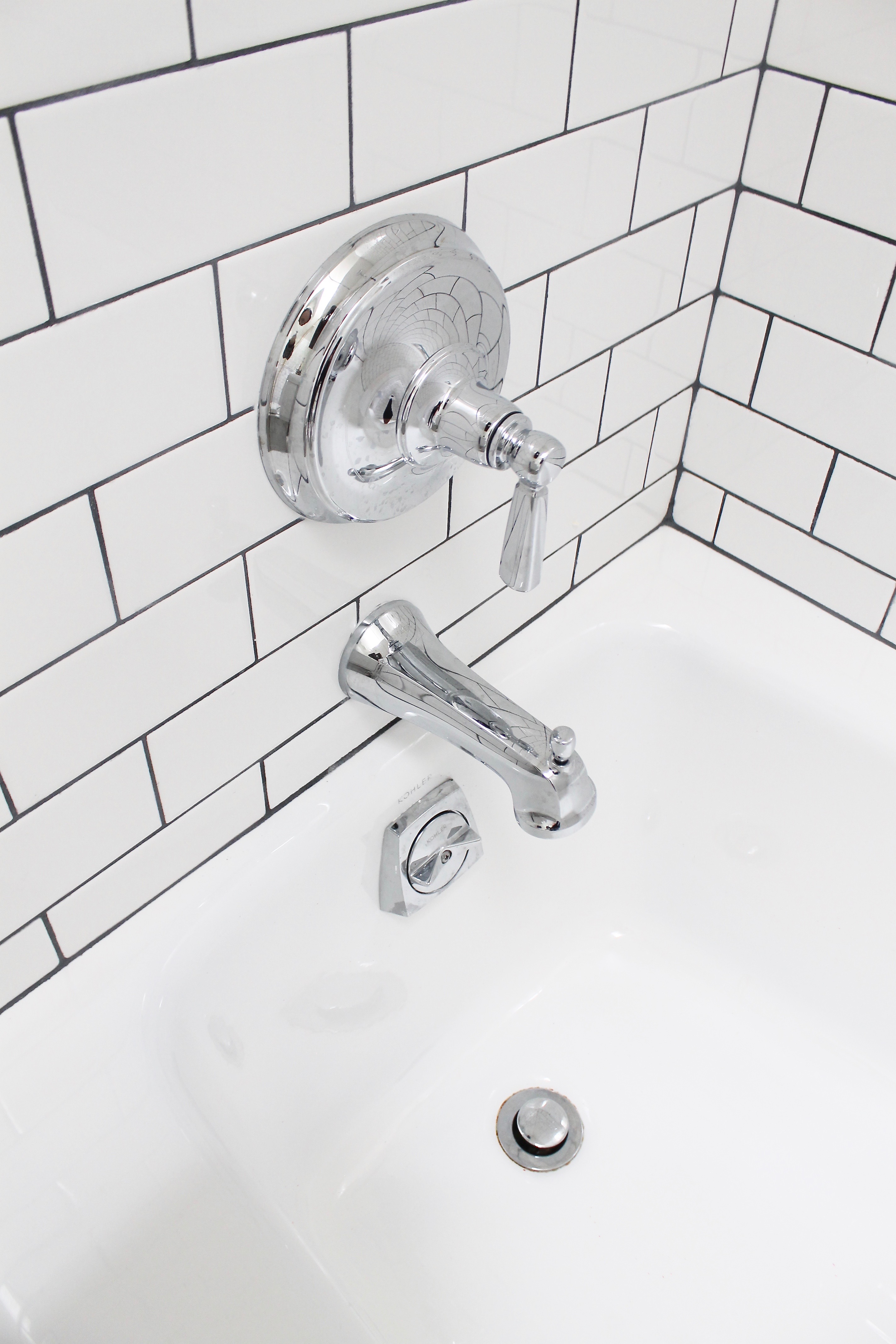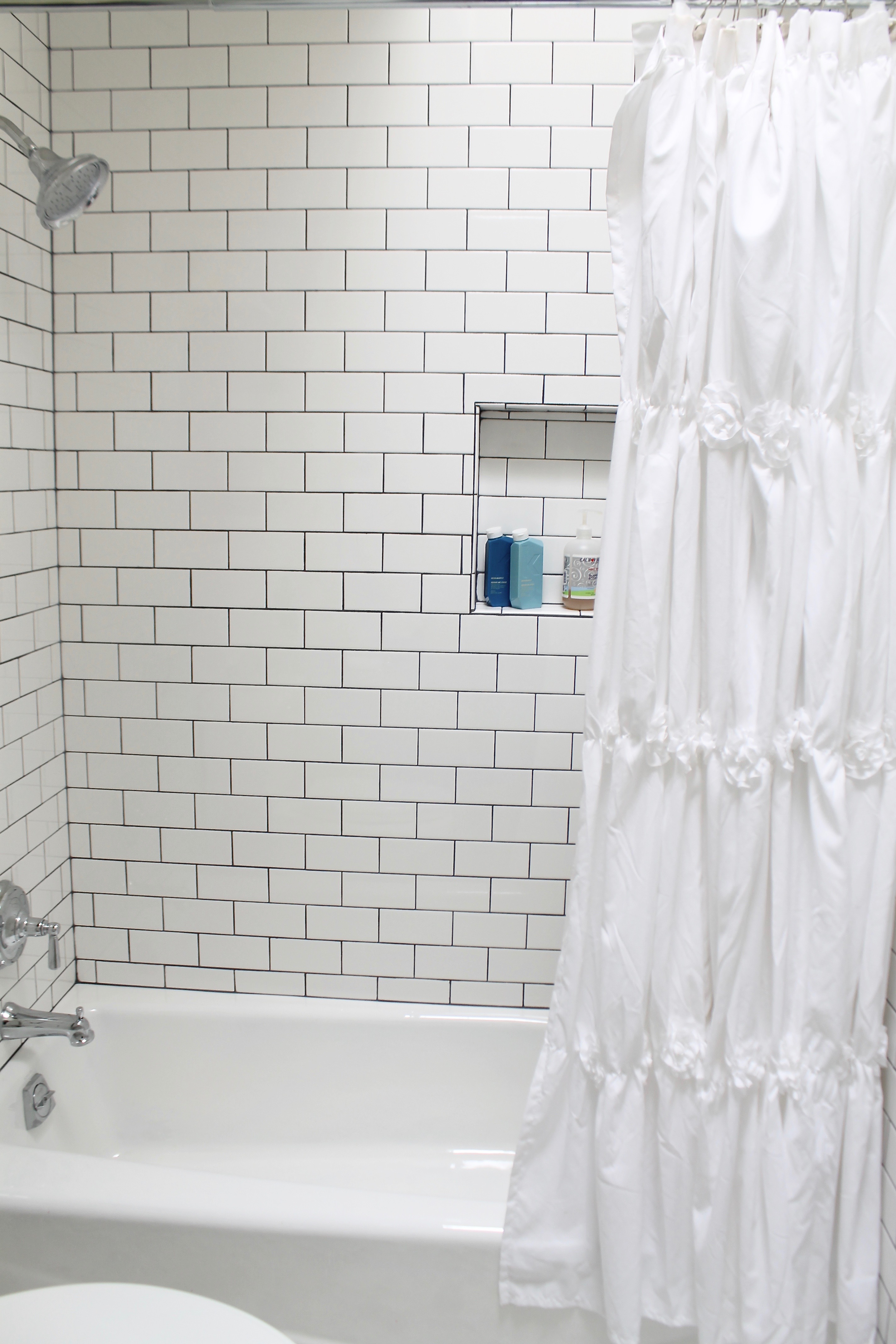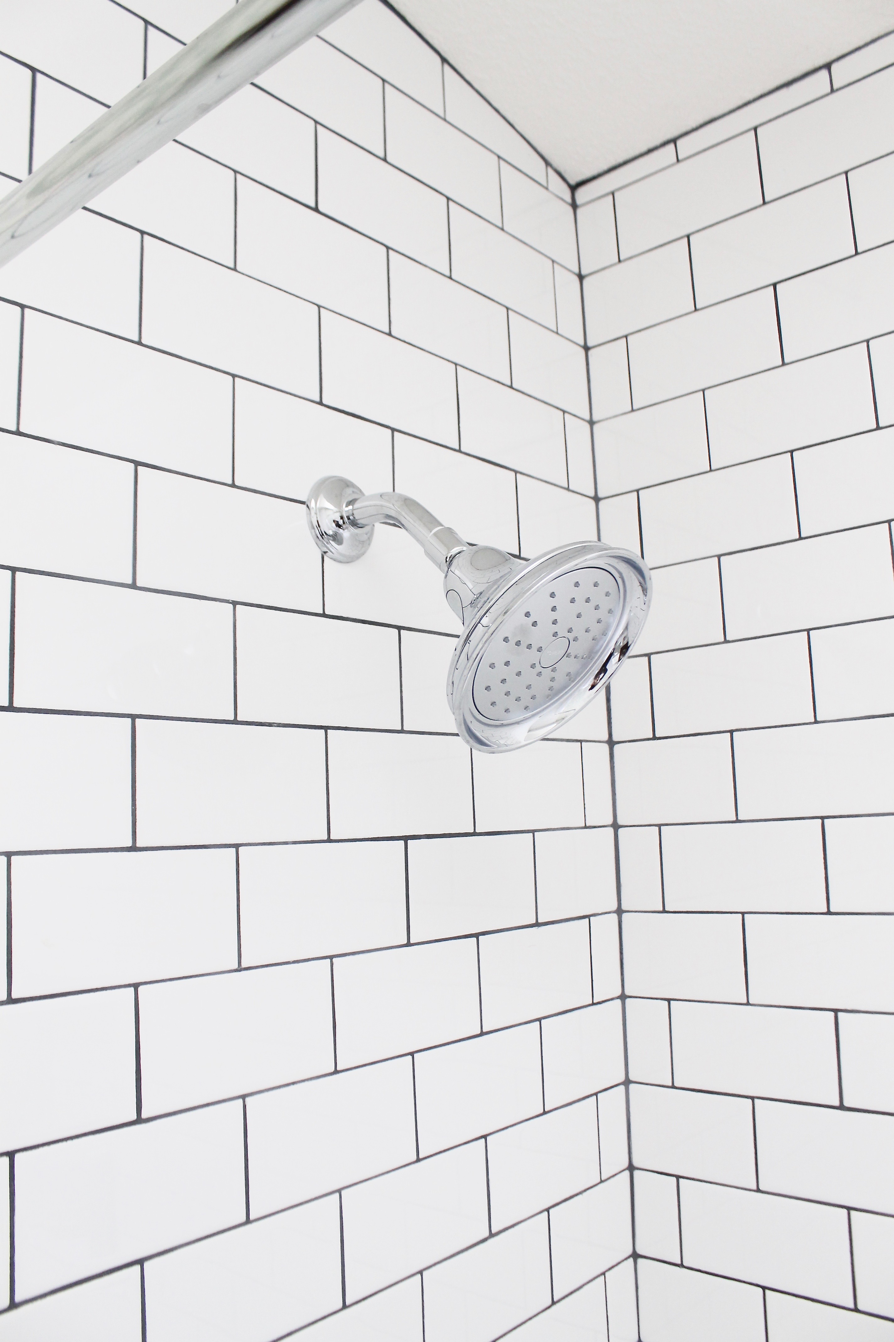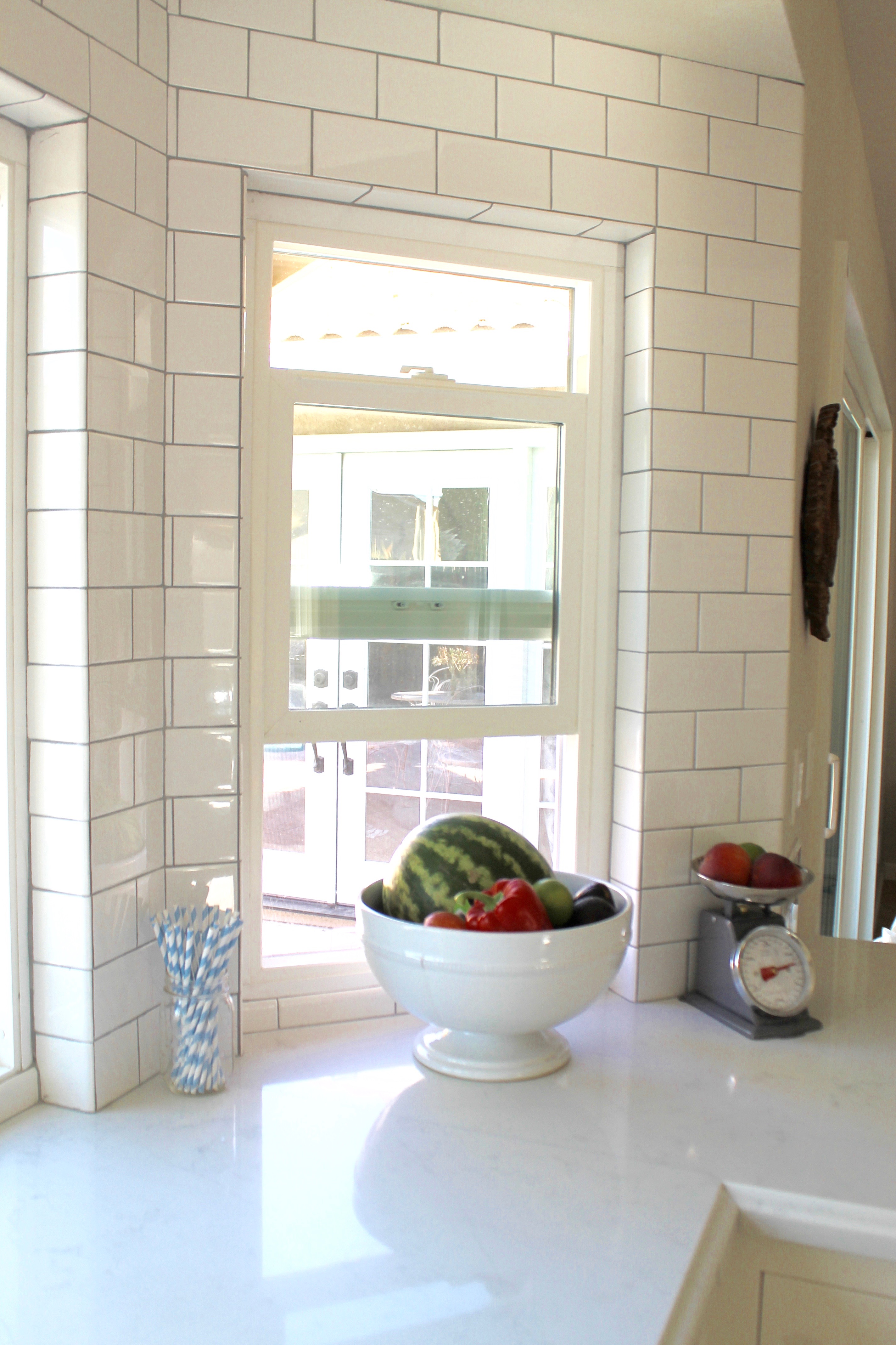 We had glossy standard subway tile installed (non-bevel) with a light grey grout color. Originally we weren’t going to go all the way around the window, but I am so happy that’s what we ended up doing. I think it adds much more of an impact and completes the whole room.
