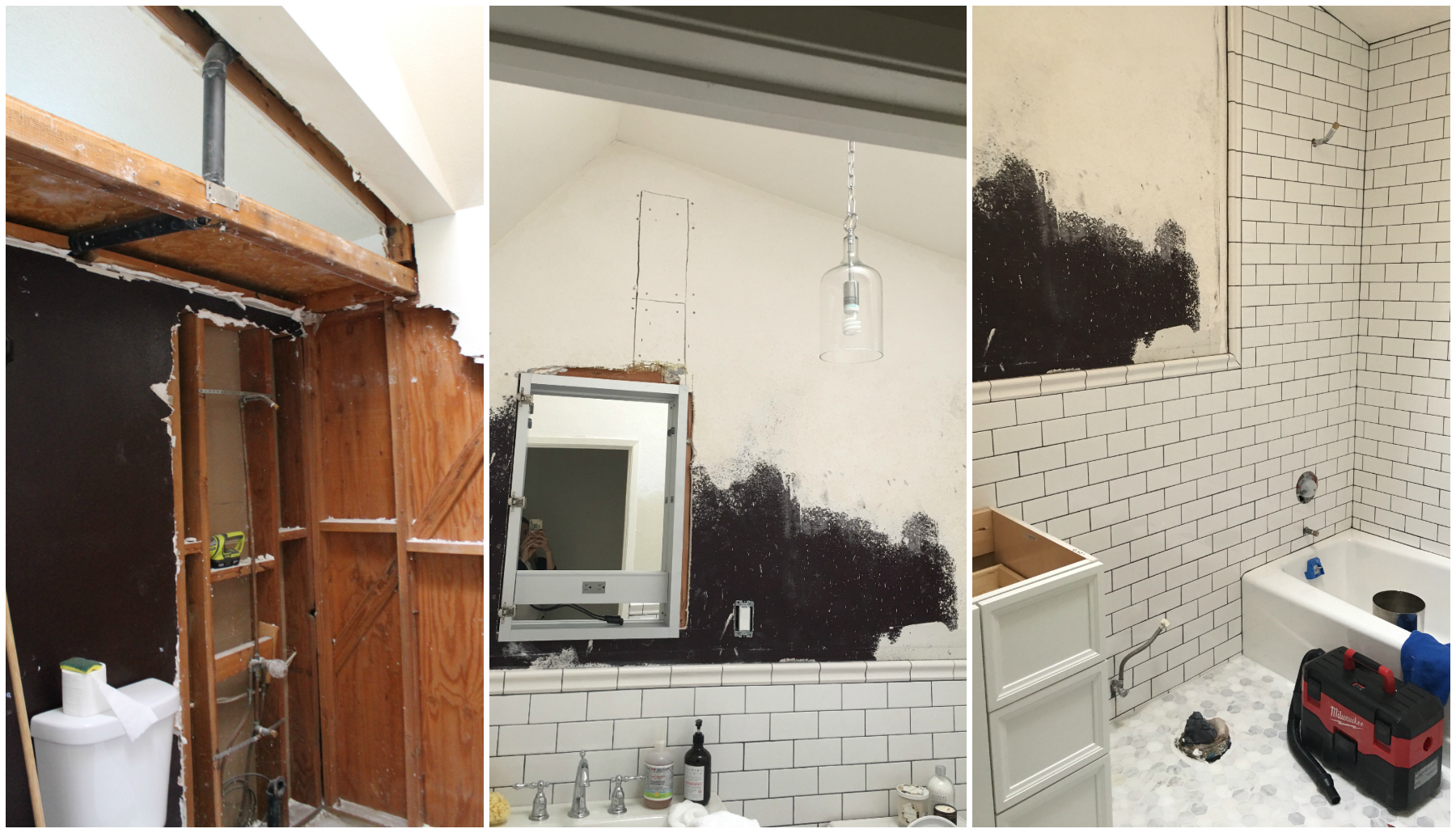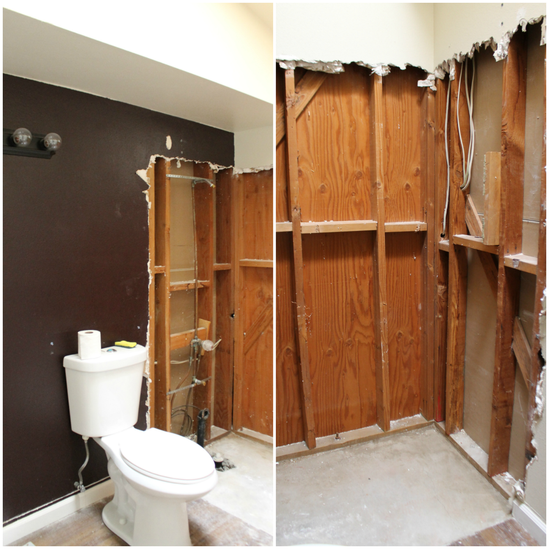 decor accents: homegoods and marshalls — BEFORE SHOTS: Here are some pictures of what the bathroom looked like when we moved in and then a few during the reno process. I’ll lay out what the steps looked like.