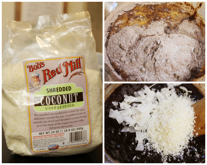 I have been a fan of these brownies for a really long time. You can’t even tell they are gluten free and taste freaking amazing. They also have chocolate chips in the mix so that is a big plus! So I wanted to do something different than pouring the mix into a sheet pan and making traditional brownies. Baking them like cupcakes was the best idea. The batter seemed to go much further and they were more fun to eat. I did realize next time I will cook them for a shorter time. They cooked a lot faster than when just poured into a pan. Also, adding some coconut gave them a nice taste that was sort of unexpected. Really delicious. Next time I will just use the shredded coconut. The coconut flakes tasted a little strange. You just follow the back of the box to cook these. You only need some butter and two eggs..so easy! I hope you guys try this mix, it is the best!