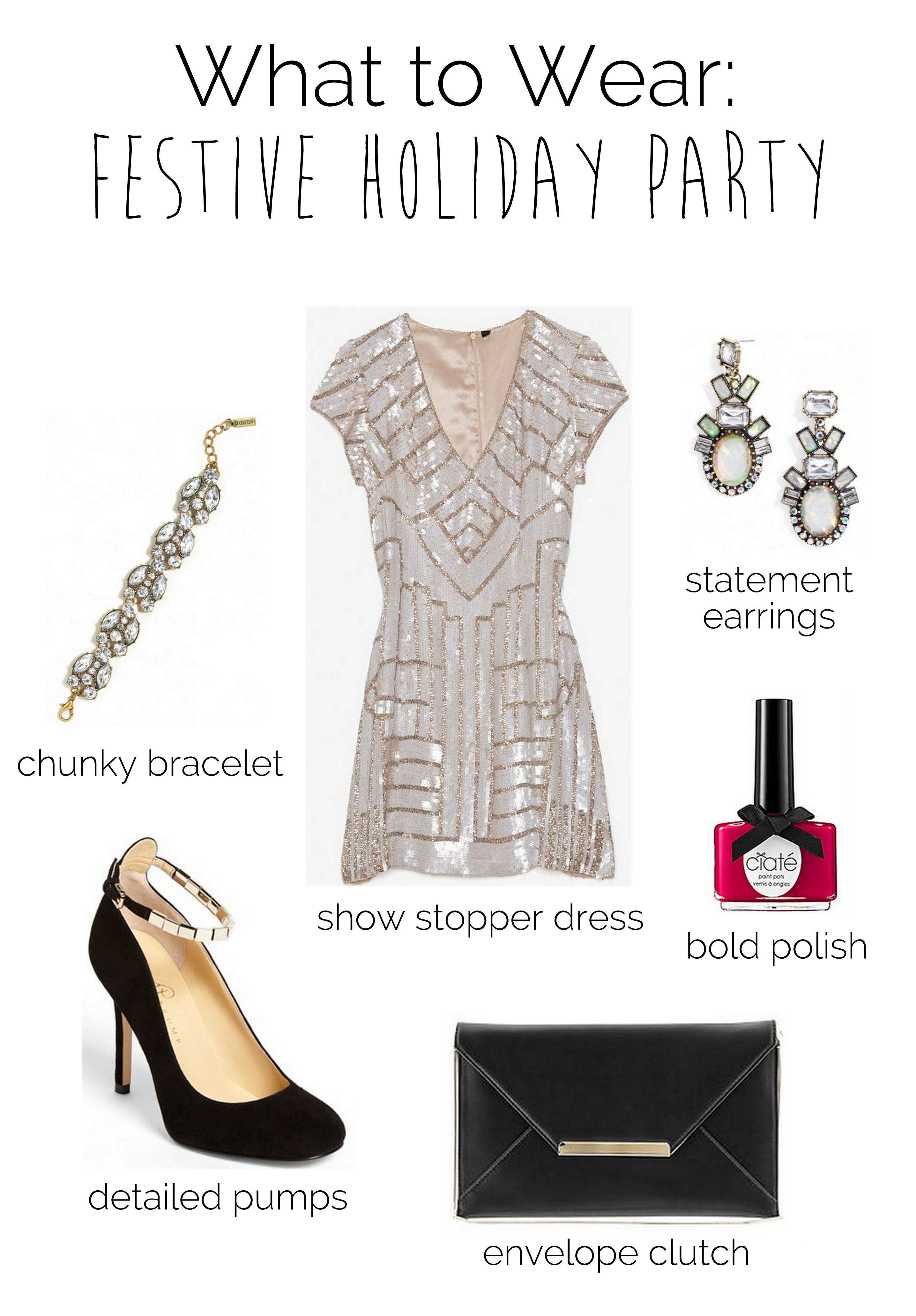 Today’s outfit is all about the glitz! I was totally inspired by Gossip Girl after having a season 6 marathon! If you have a more fancy holiday party to go to, try wearing a sequined dress. It is both playful and glamorous. Metallics are a great way to break out of your typical LBD. A classic black pump with detail around the ankle, ties in the sparkle from the dress. Finish off with some statement jewelry and a simple envelope clutch. Cheers!