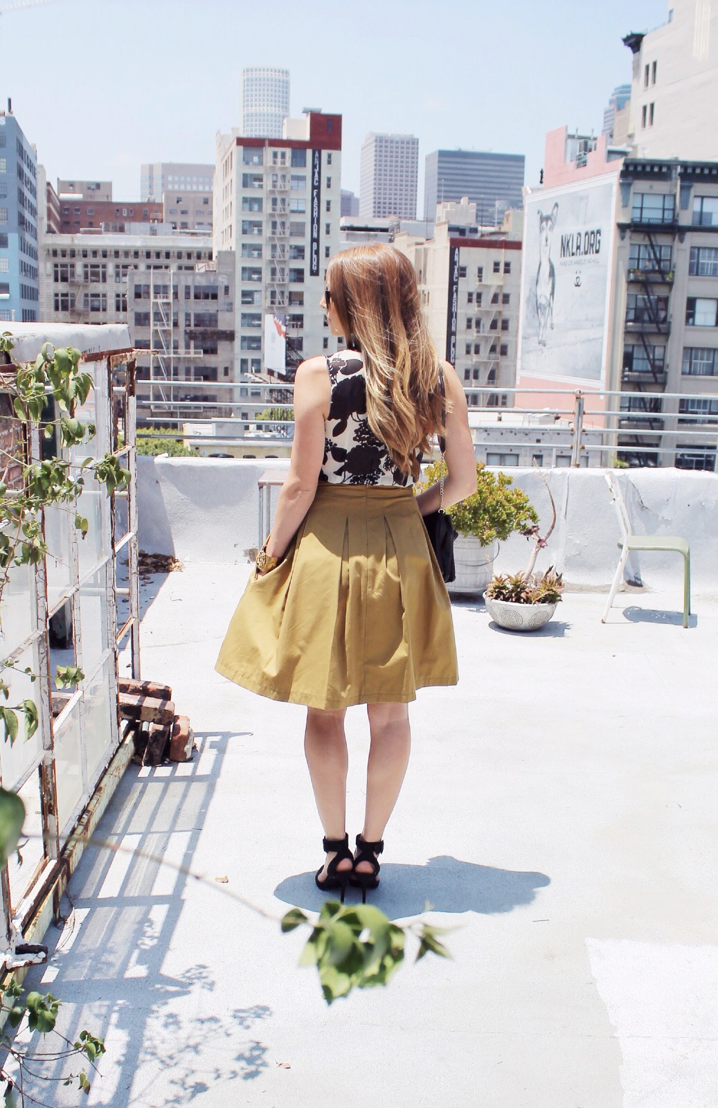 I had so much fun with this look by Bri Seeley. Totally different than my usual laid back style, but it is always fun to step outside your comfort zone every now and then. I was immediately drawn to this mustard skirt. It adds a richness to the outfit without being too in your face. I also am loving this black and white printed top. There is a tie at the neck which you can’t see from my pictures. The neat thing is, you can tie it in front or back depending on the look you are going for. Right when Andrew saw these pictures he said, ‘oh like New Girl’. So if you are wanting to look like Jess, this is perfect for you! I hope you all are having a great week and thanks so much for stopping by!top: bri seeley