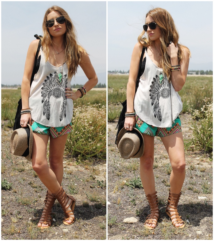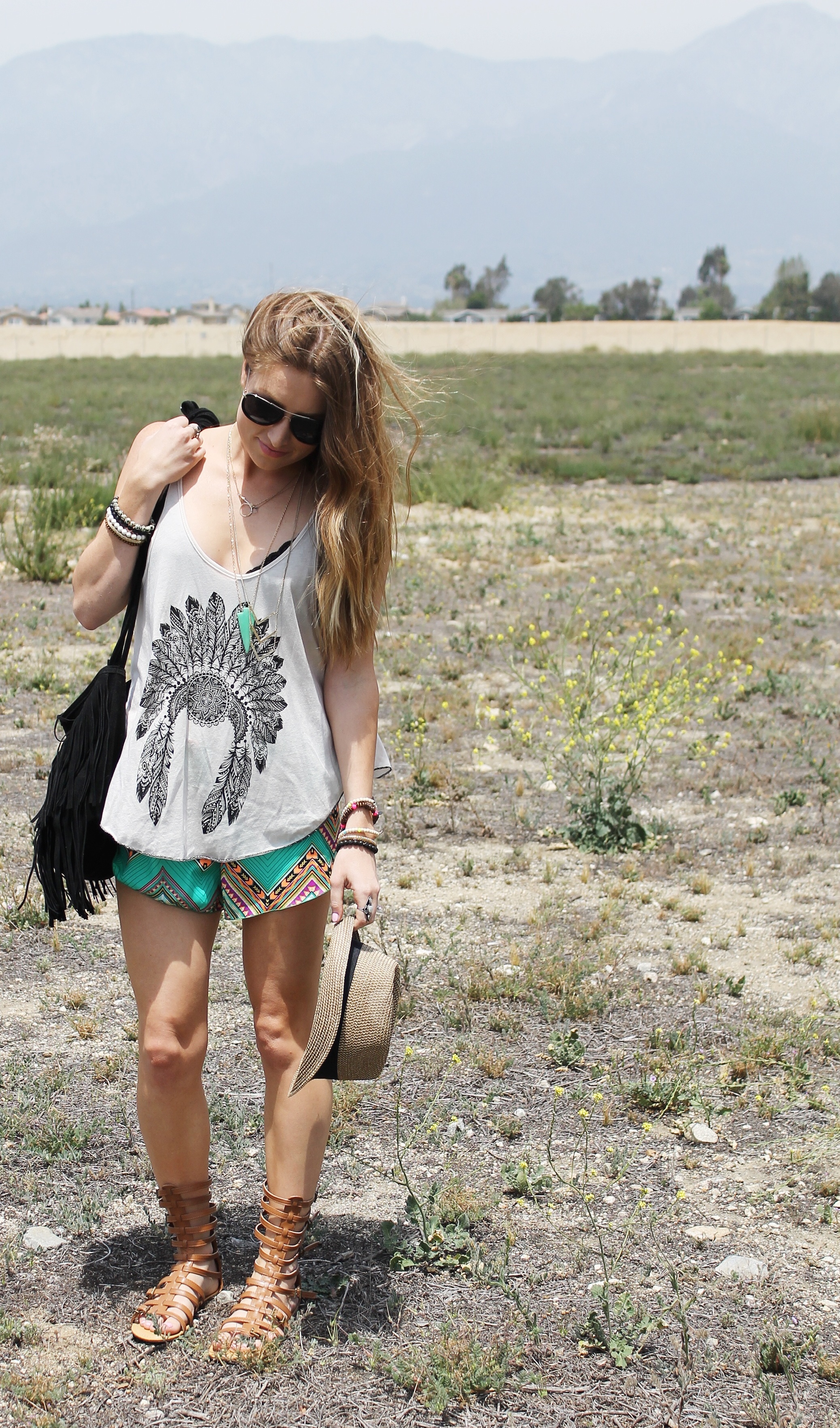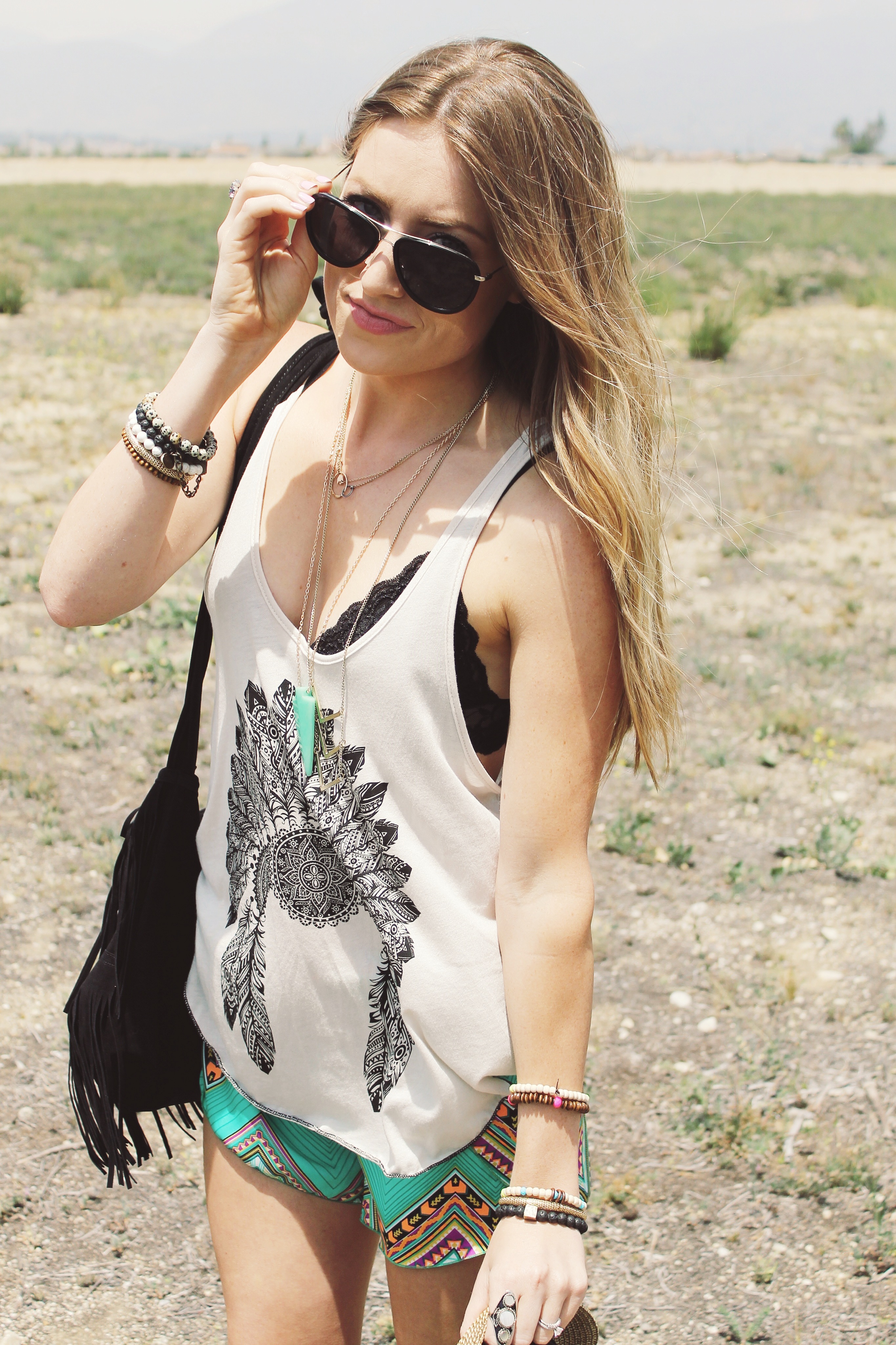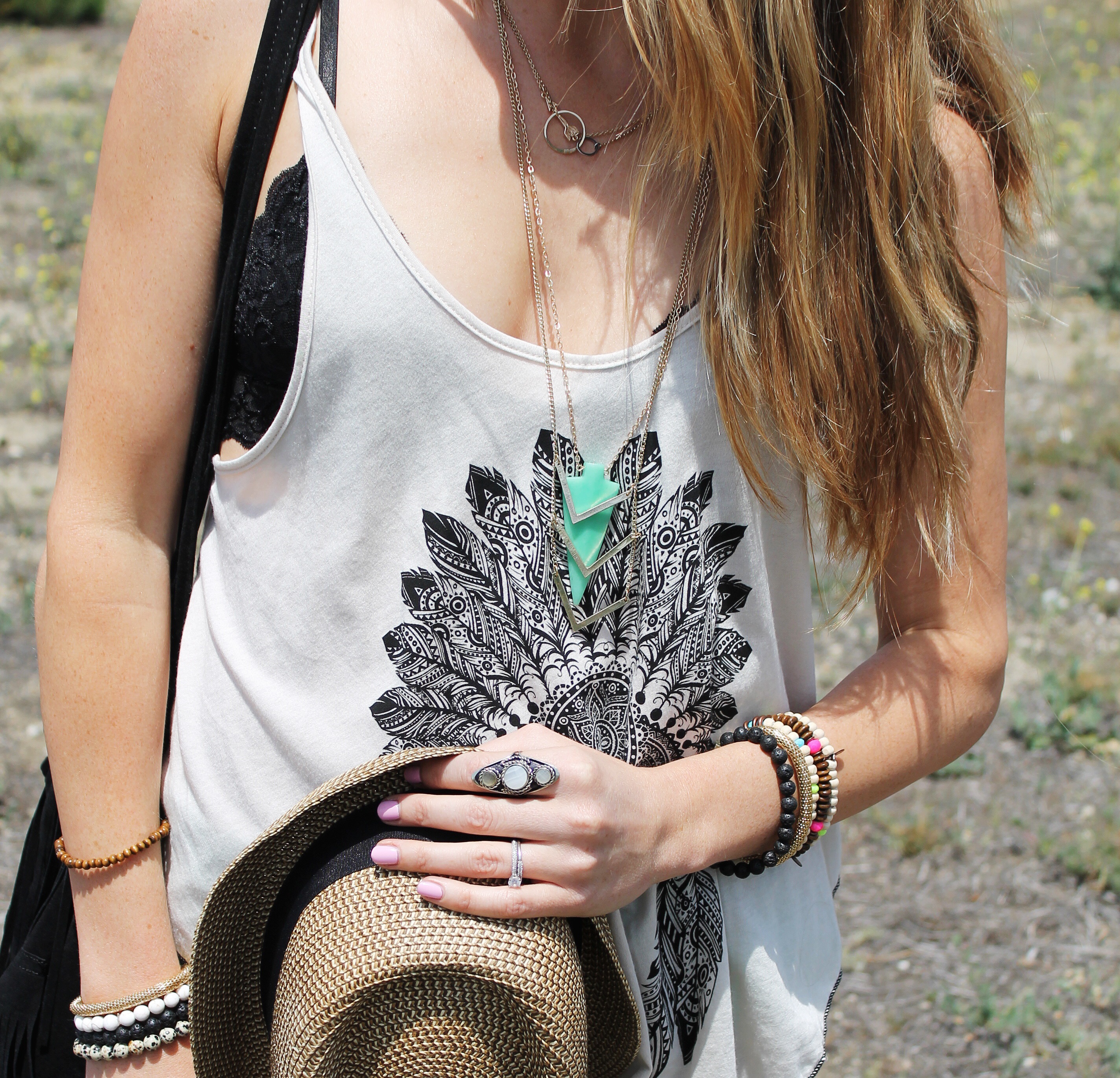 I was feeling super hippie for this look. I wanted something comfortable and lightweight, but still really fun and full of accessories. I layered a ton of jewelry, but made sure it was all delicate enough to go together. I also paired these amazing gladiator flats and fringe bag. (I’ve been using this bag everyday and it is perfect! I tied a knot at the top to make the strap a little smaller.) I think I am going to become obsessed with bralettes this summer. I just got this black one from ShopLately and love how effortless they are, and the lace looks so cute peaking out of your top. They do run pretty small, so watch out for that. I cannot wait for summer. I mean, it kind of already feels like summer because of how hot it is. But, until June rolls around I will just pretend!